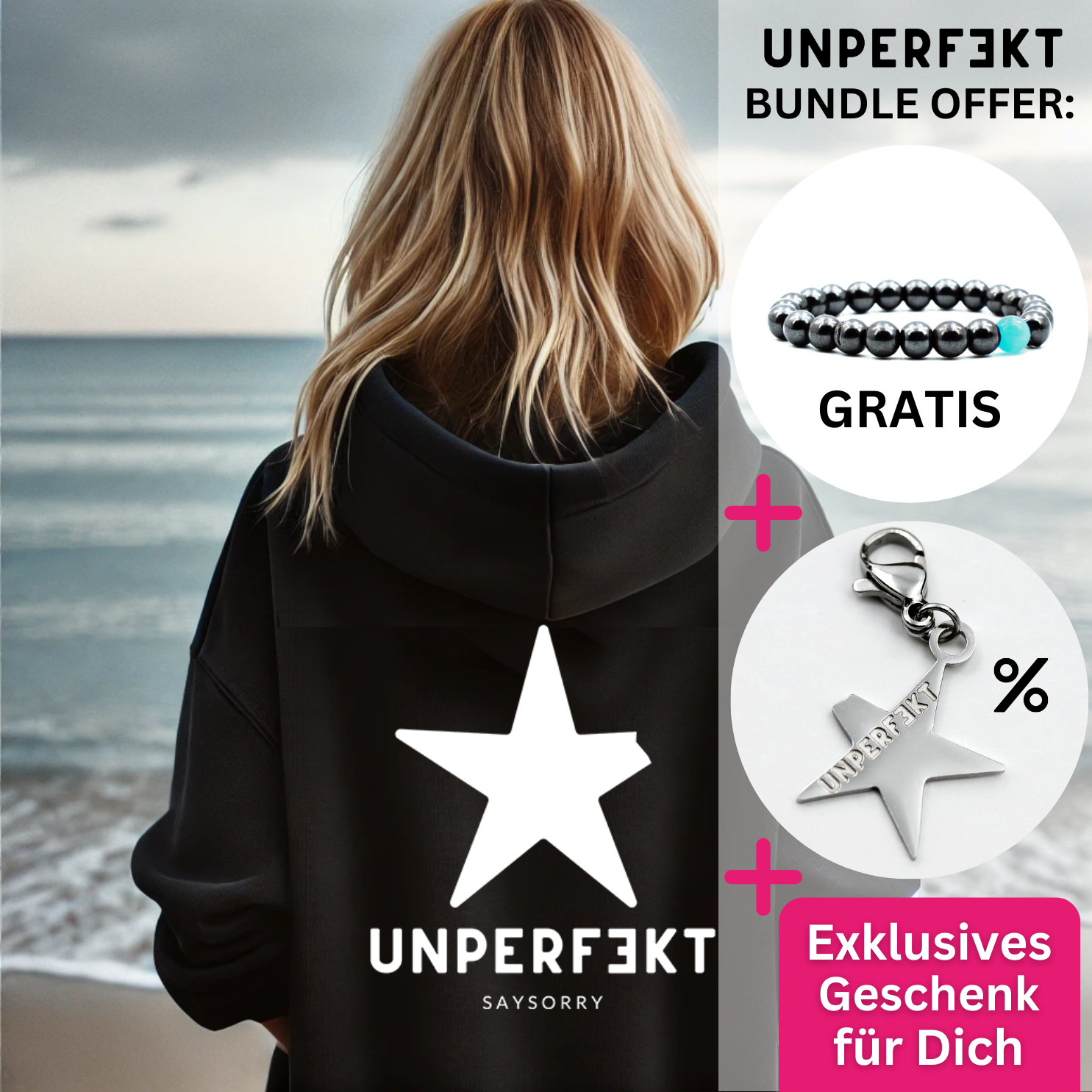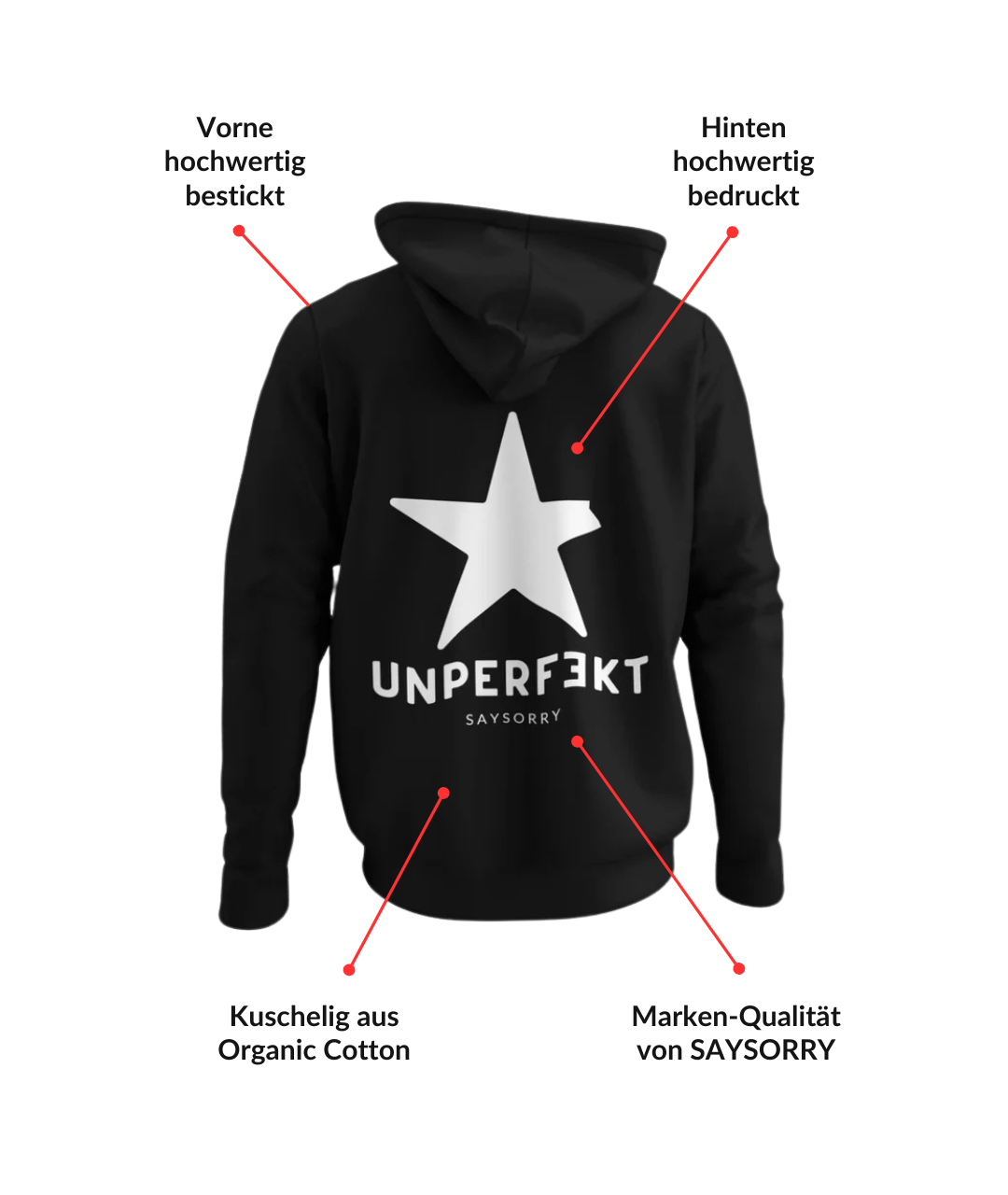 Organic unisex Hoodie »Unperfekt« Stern vorne bestickt, hinten bedruckt