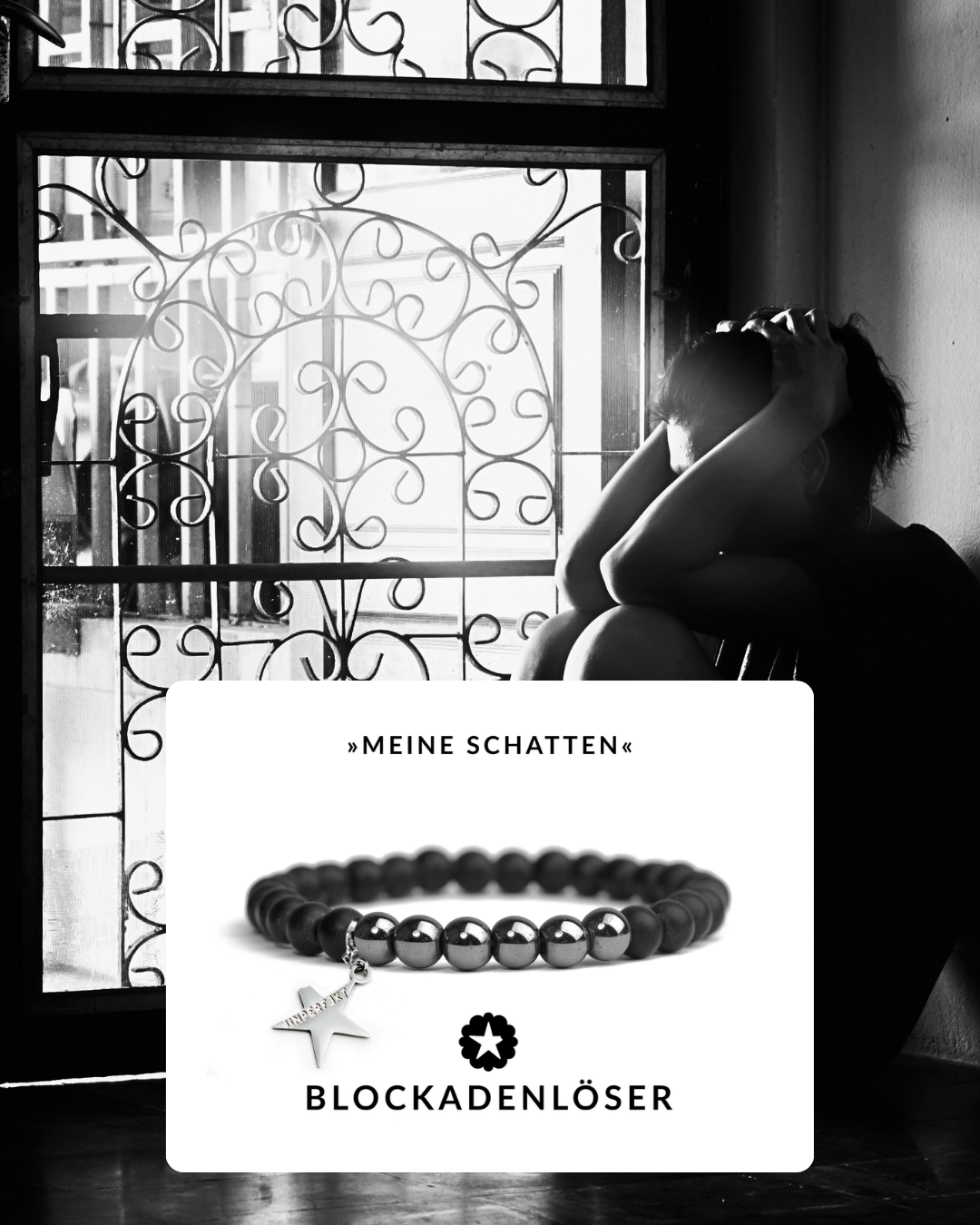 »Meine Schatten« Blockadenlöser-Armband aus Hämatit und Onyx inkl. abgebrochenem Stern