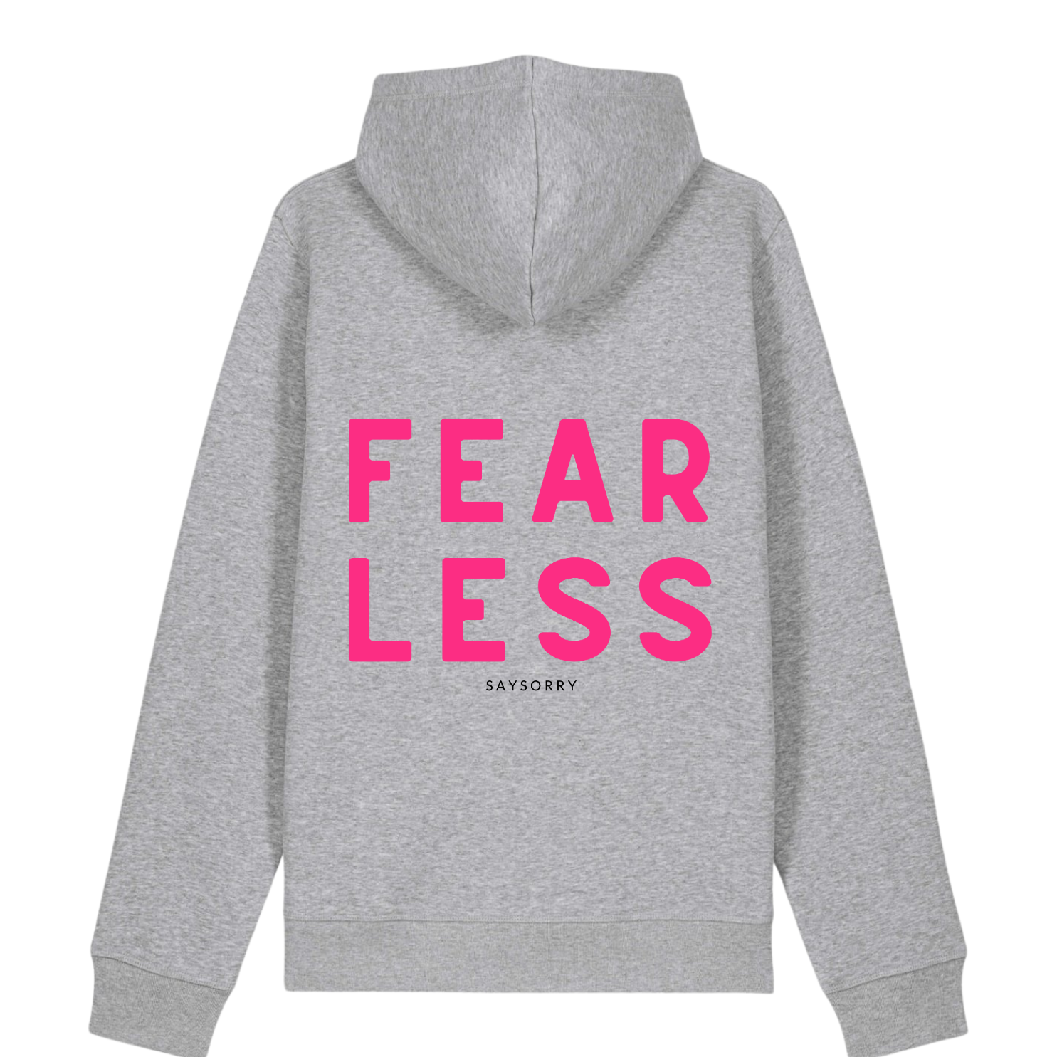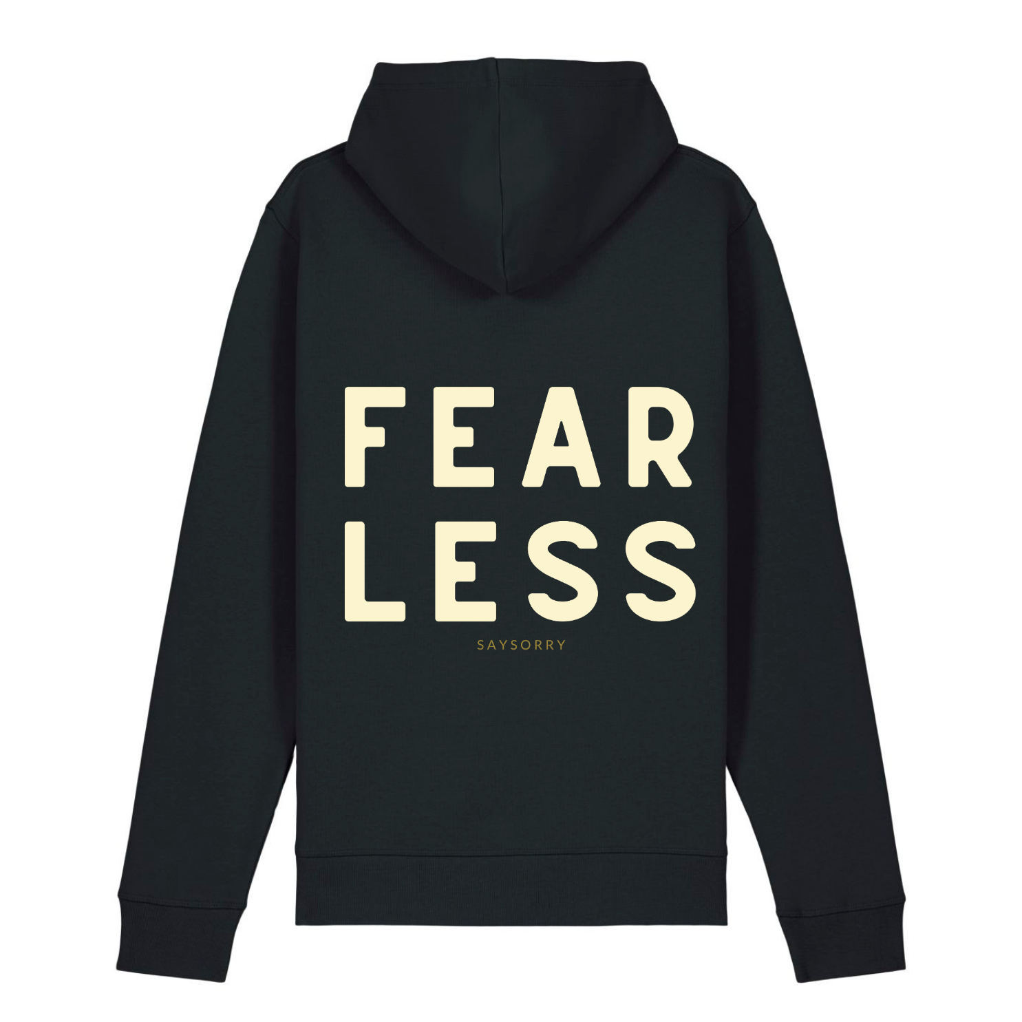 100% Organic unisex Hoodie in vielen Farben »Fearless«, hinten bedruckt, vorne hochwertig bestickt