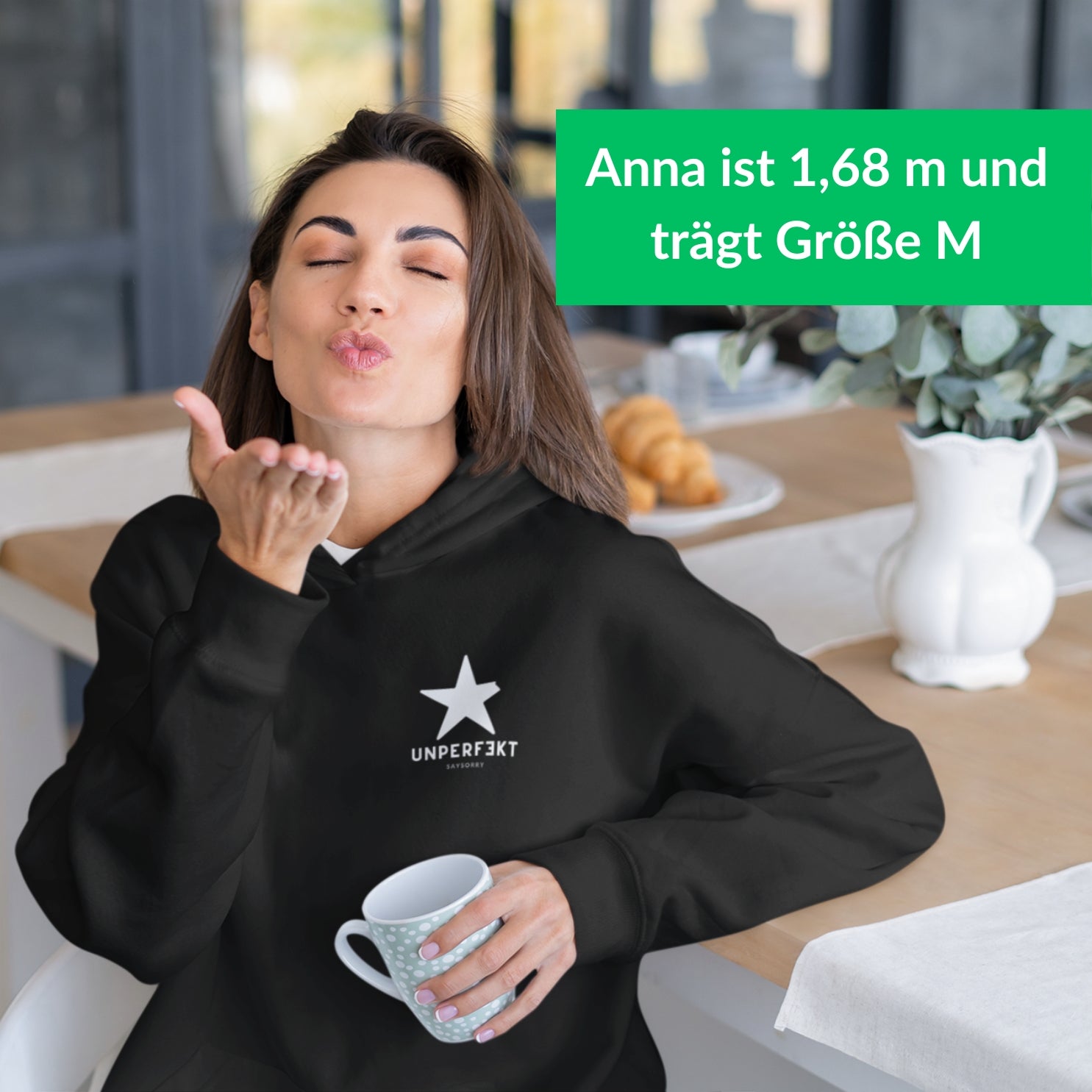 Unser neuer SAYSORRY Hoodie schmeichelt Deiner Figur, indem er eine lockere und gleichzeitig schmeichelhafte Silhouette zeichnet.
