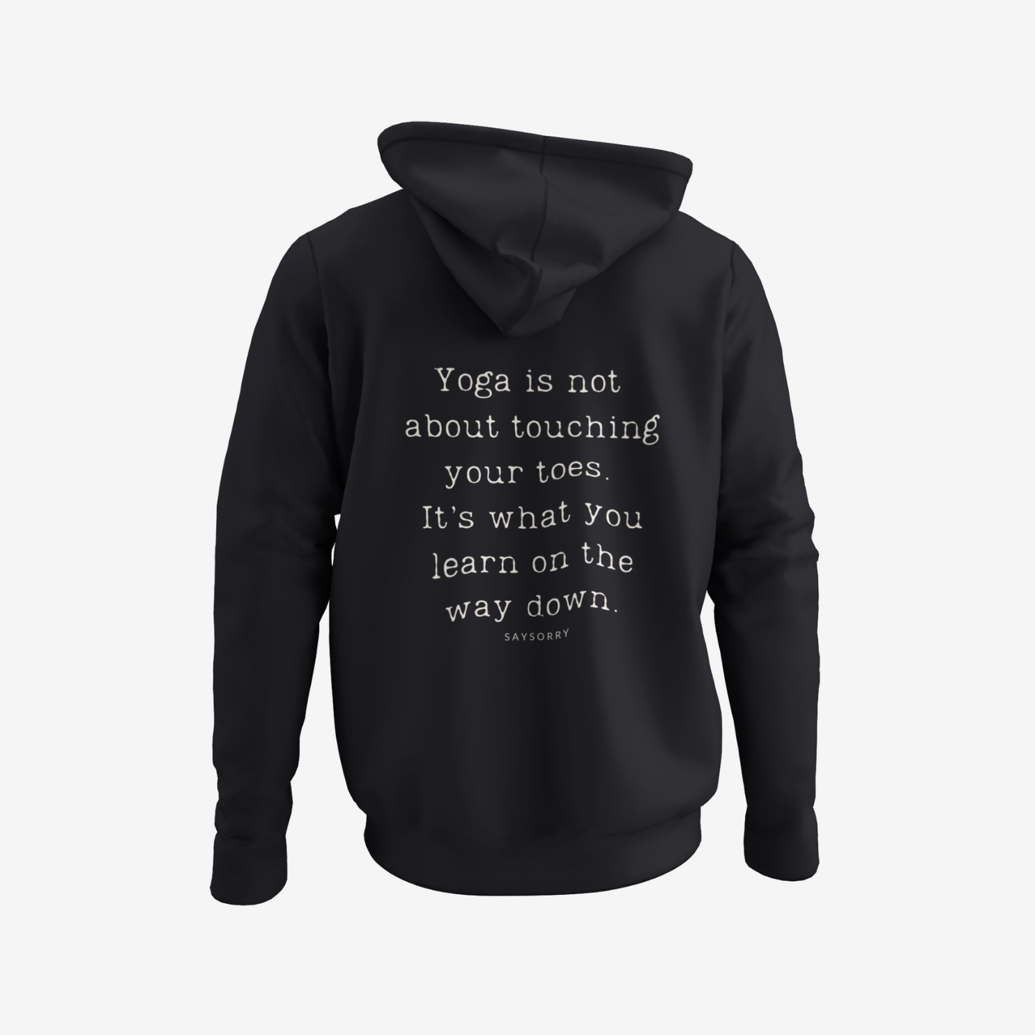 100% Organic unisex Hoodie in vielen Farben »Yoga is not about touching your toes.« vorne bestickt & hinten bedruckt