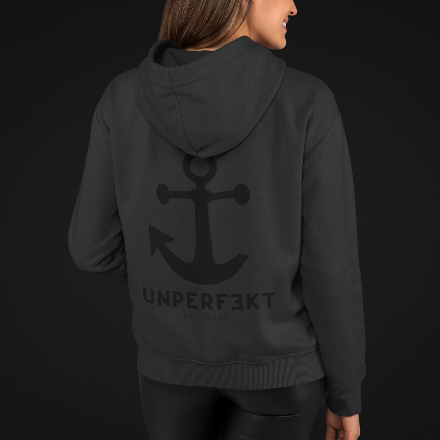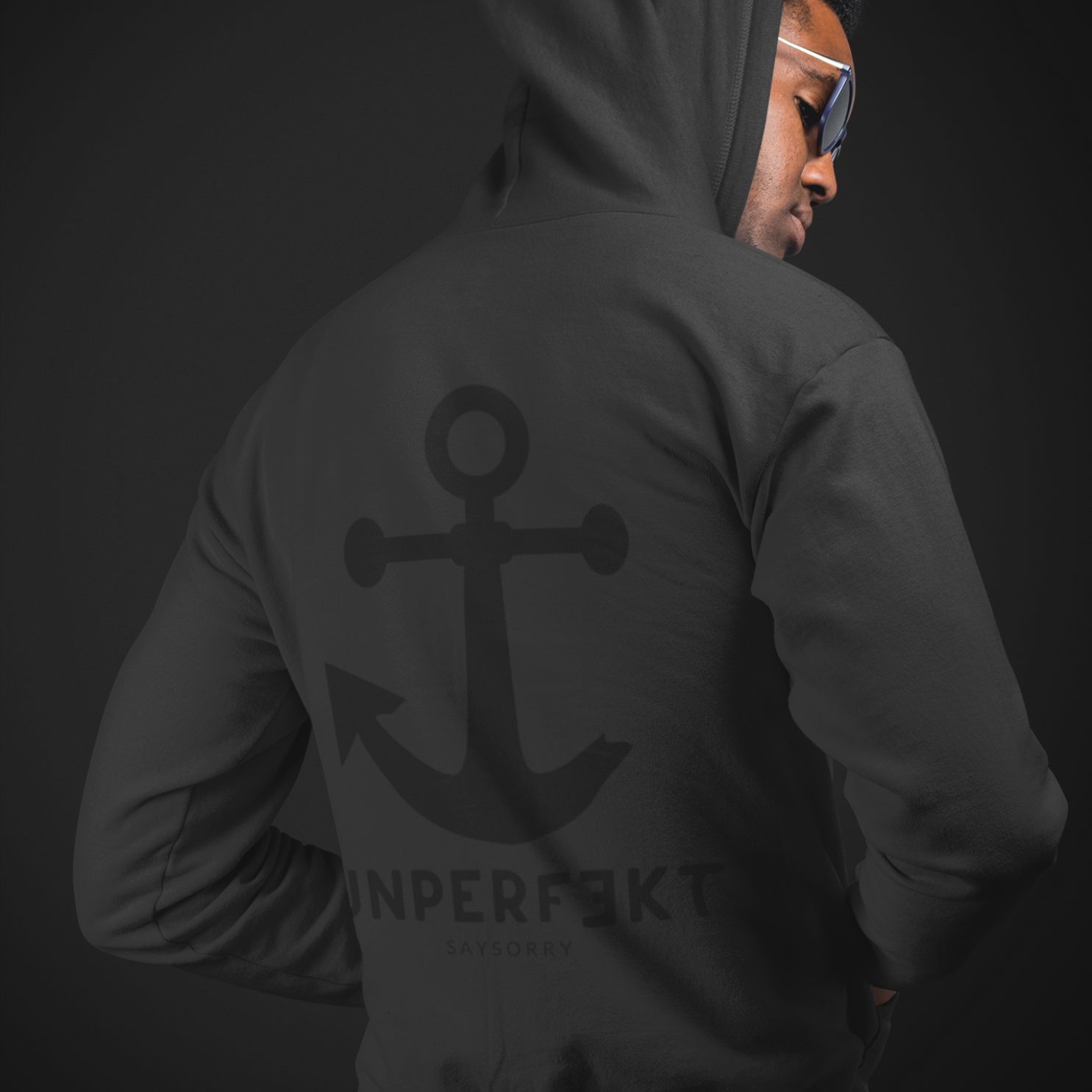 Black Edition organic unisex Hoodie »unperfekt mit Anker vorne bestickt & hinten bedruckt«