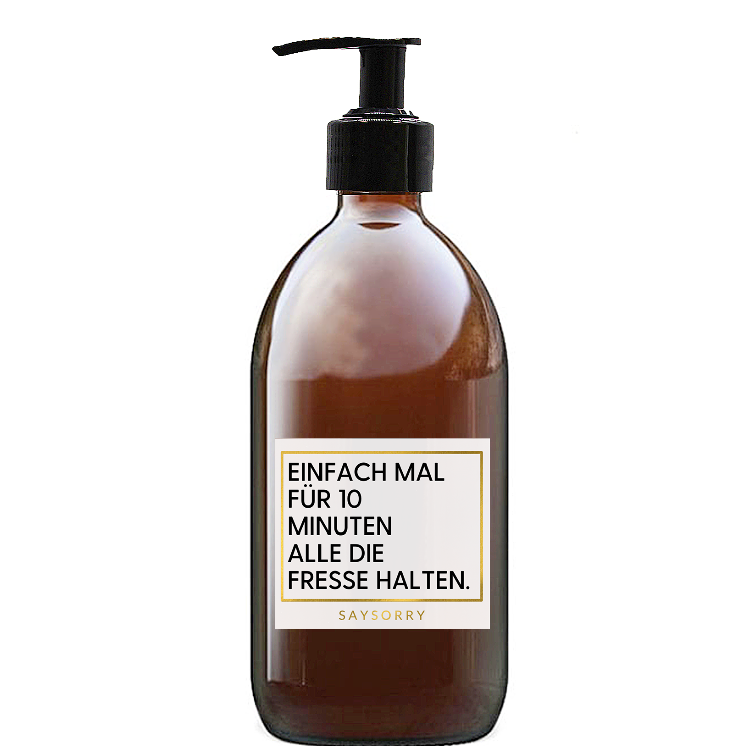 Edle Sandelholz Handseife »Einfach mal für 10 Minuten alle die Fresse halten« in nachfüllbarer Glasflasche